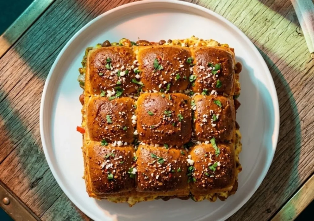 Prep the Buns: Take a pack of slider rolls (pav). Without separating the individual rolls, slice the entire slab in half horizontally.