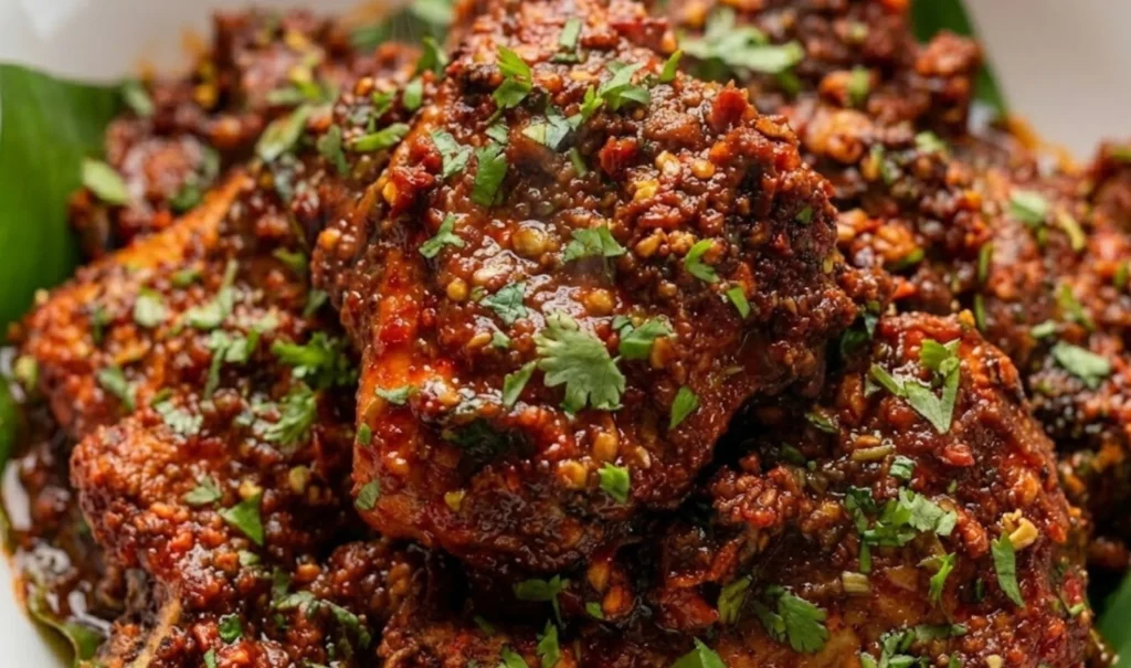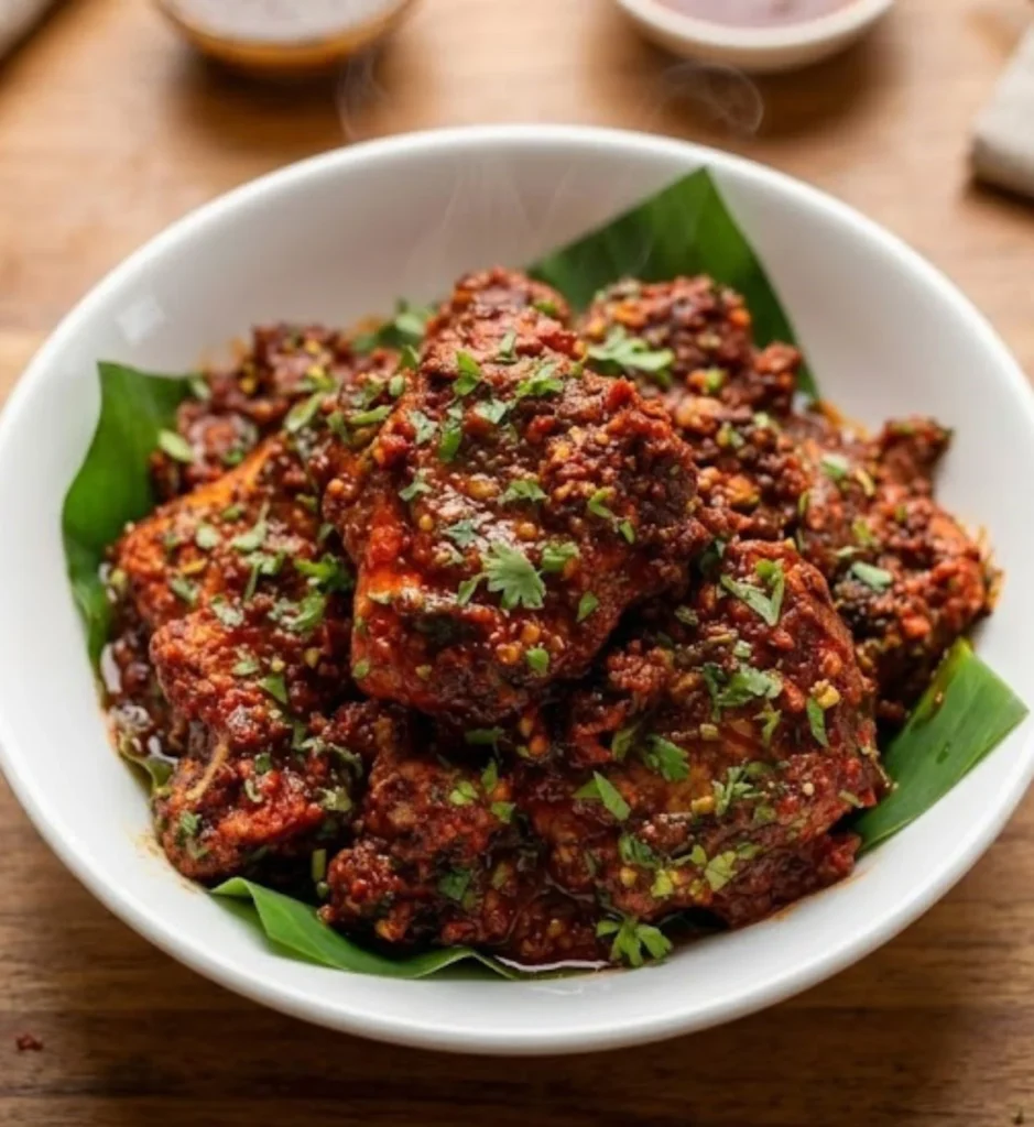 This isn’t just another chicken fry; it’s a masterpiece of tender, juicy chicken breast slices enveloped in a rich, velvety chili garlic masala that is both smoky and tangy.