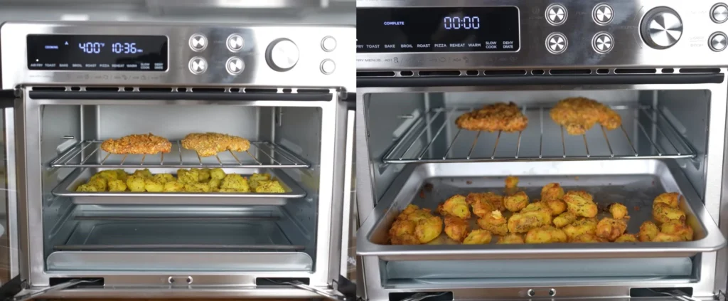 One-Appliance Wonder: This entire meal fries, chicken, and even toasted buns can be made in a single air fryer oven.