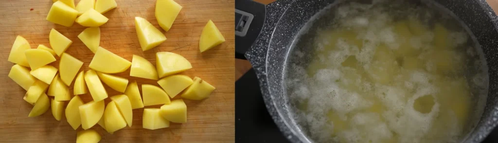 When you stop shaking, the potatoes should no longer look like smooth chunks. They should look a bit “mashed” or fuzzy on the edges. This starchy, mashed-potato-like film covering the chunks is the slurry.
