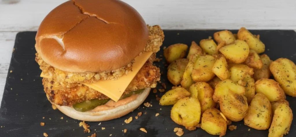 If you’re looking to satisfy those fast-food cravings with a higher-protein, lower-calorie alternative, this Crispy Chicken Sandwich and Air-Fried Potato meal is the perfect solution. Clocking in at 866 calories and 58g of protein for the entire meal, it delivers deep-fried level crispiness without the excessive oil.