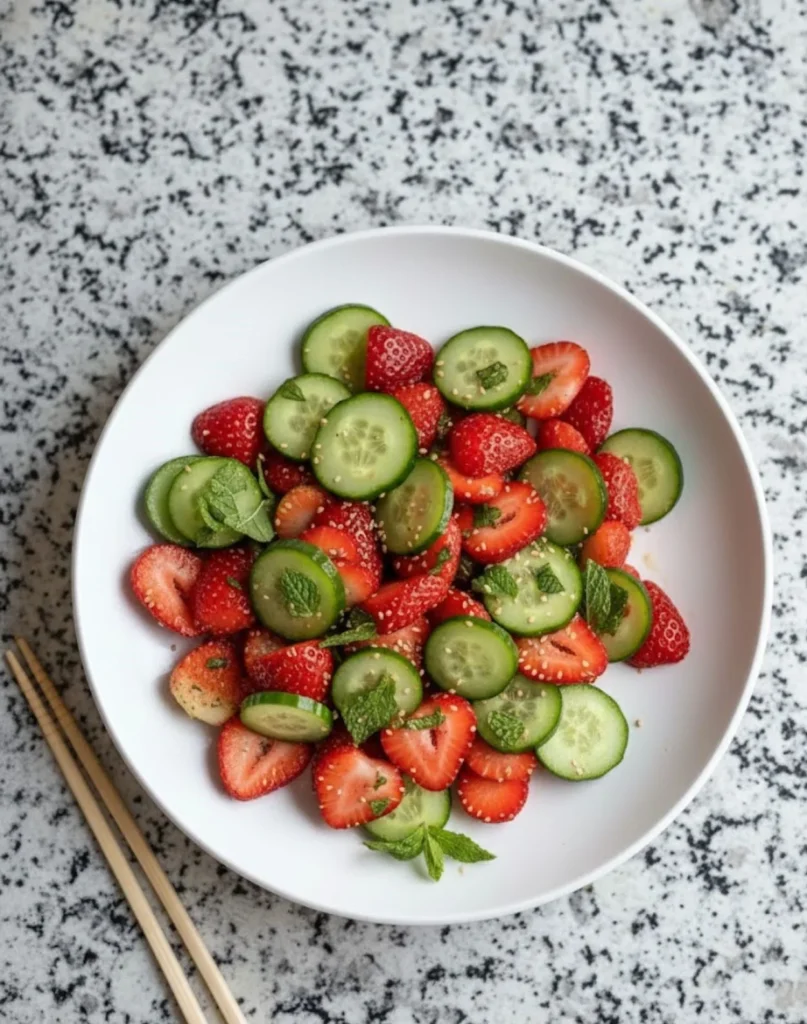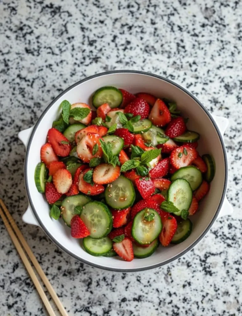 Freshness is King: Always choose firm cucumbers and fragrant strawberries. This salad relies on the quality of the produce, not the complexity of the technique.