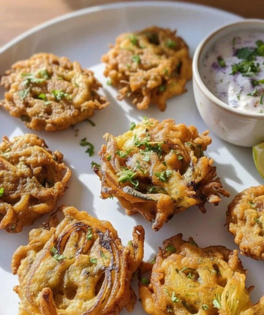 While the terms are often used interchangeably, a “Bhaji” usually refers specifically to the shredded onion style (similar to a fritter), whereas “Pakora” can refer to any vegetable (like potato or spinach) dipped in a thicker batter and fried.